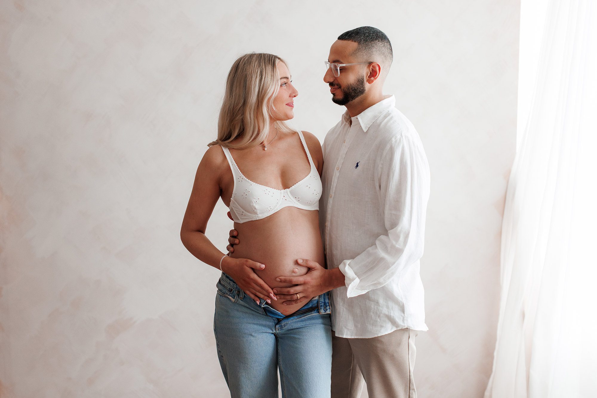 We’ll use the soft daylight from the windows to create a range of looks, from intimate close-ups to elegant silhouette portraits that highlight your baby bump.